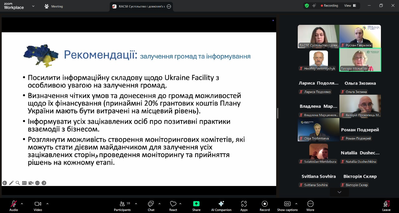 - Забезпечення належного залучення громад та відповідного інформування про можливості Ukraine Facility, включно з фінансуванням.