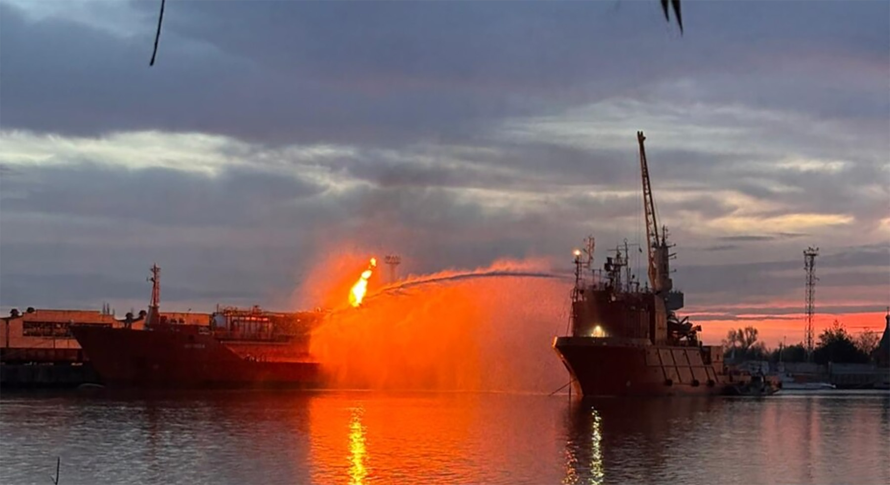 Пожежа на цивільному судні після нічної атаки на порт Ізмаїл 17.11.2025 р. Фото Радіо Свобода