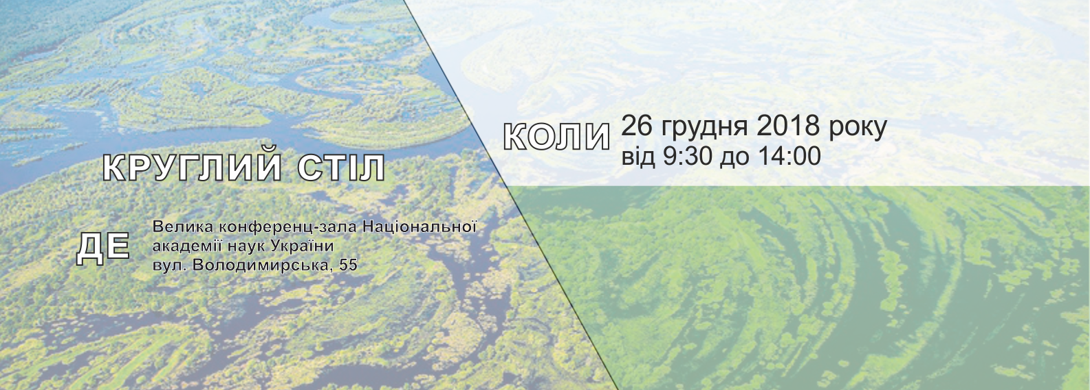 26 грудня 2018 року від 9:30 до 14:00 у Великій конференц-залі Національної академії наук України, за адресою Володимирська, 55 відбудеться Круглий стіл “Природні цінності Полісся і загрози довкіллю внутрішньоконтинентального водного шляху Е40 Гданськ – Херсон”