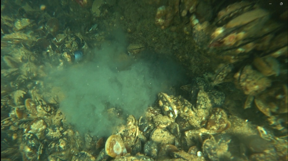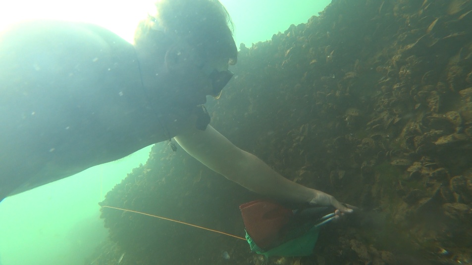 Голова Одеського підрозділу НЕЦУ Владислав Балінський відібрав проби седиментів на дні Чорного моря, змивів із мідій та живих особин одно- та дворічних молюсків в районі одеського пляжу «Собачий». Зразки будуть передані до спеціалізованої лабораторії для аналізу хімічного складу.