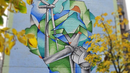 В Києві на зовнішній стороні будівлі ЖЕКУ презентували величезне графіті, яке було виконане молодими українськими стрітартерами. Відтепер соковито-зелені та свіжі блакитні «Вітряки» нагадуватимуть киянам про можливість вибору між енергетичною кабалою та можливостями…