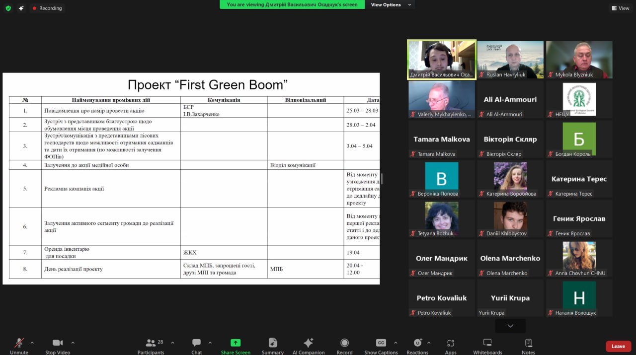 Учасники проєкту «Освіта для сталого розвитку: передача досвіду Вишеградських країн для відновлення України» зустрілися онлайн 28 березня 2024 року, щоб обговорити тему “Подолання наслідків пожеж для відновлення післявоєнної України”. Для участі в онлайн-семінарі було зареєстровано 28 учасників. На семінарі організатори ознайомили учасників з результатами міжнародного освітнього проєкту «Співпраця щодо запобігання пожеж на полігонах ТПВ та пом’якшення їх наслідків у регіоні Балтійського моря» акронім PreMiWaFi, в якому досліджувались проблеми, пов’язані з пожежами на полігонах твердих побутових відходів в Швеції, Литві, Латвії, Естонії та Грузії. Учасники обговорили заходи післявоєнної відбудови країни з наголосом на підсилення спроможності України сприяти збереженню природних ресурсів, захисту біорізноманіття та протидіяти змін і клімату. Як результат обговорення були отримані фахові рекомендації щодо стратегії вибору технологій відновлення земель, поширення інформації про небезпеки для довкілля та здоров’я населення.
