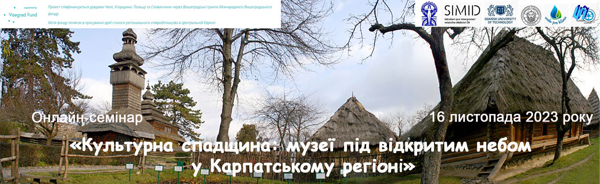 16 листопада 2023 року відбувся онлайн-семінар «Культурна спадщина: музеї під відкритим небом у Карпатському регіоні». Це другий семінар із серії запланованих освітніх заходів для передачі досвіду Вишеградських країн українським студентам. У своєму вітальному слові керівник проекту Тарас Ковальчук нагадав цілі та завдання проекту та представив спікера заходу Міхала Медека, директора Чеського інституту інтерпретації спадщини.