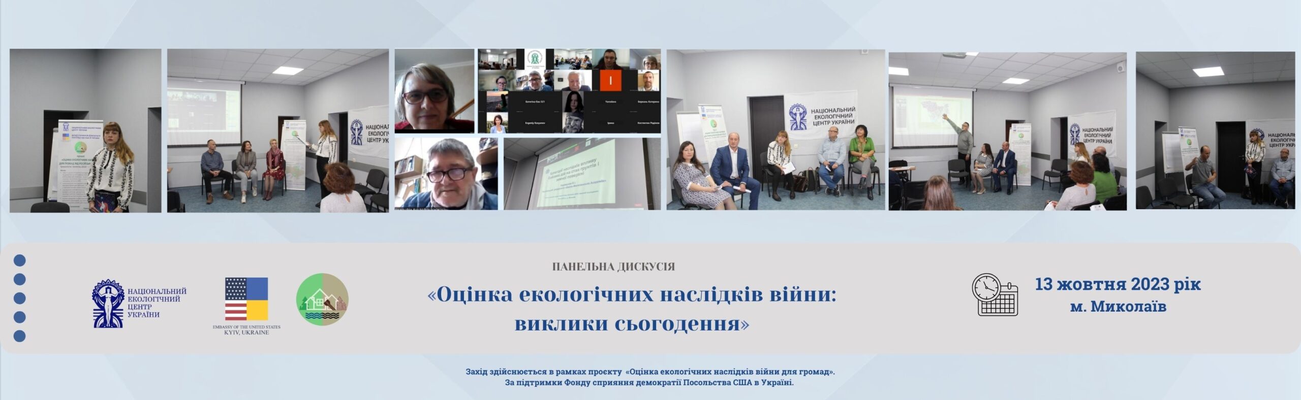 13 жовтня 2023 року в м.Миколаїв відбулася панельна дискусія в рамках проекту “Оцінка екологічних наслідків війни для громад”, що реалізується Національним екологічним центром України за підтримки Фонду сприяння демократії Посольства США в Україні.