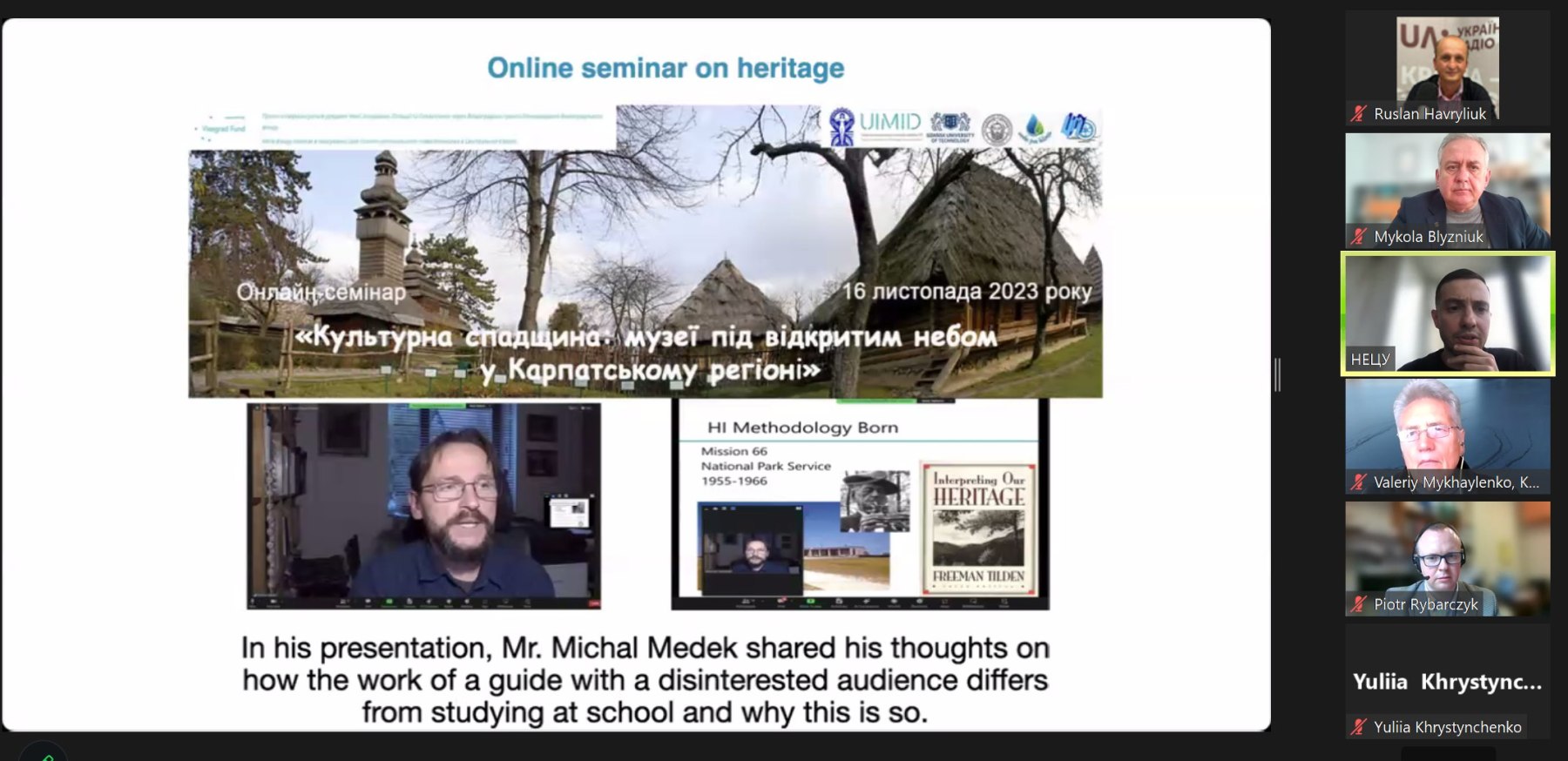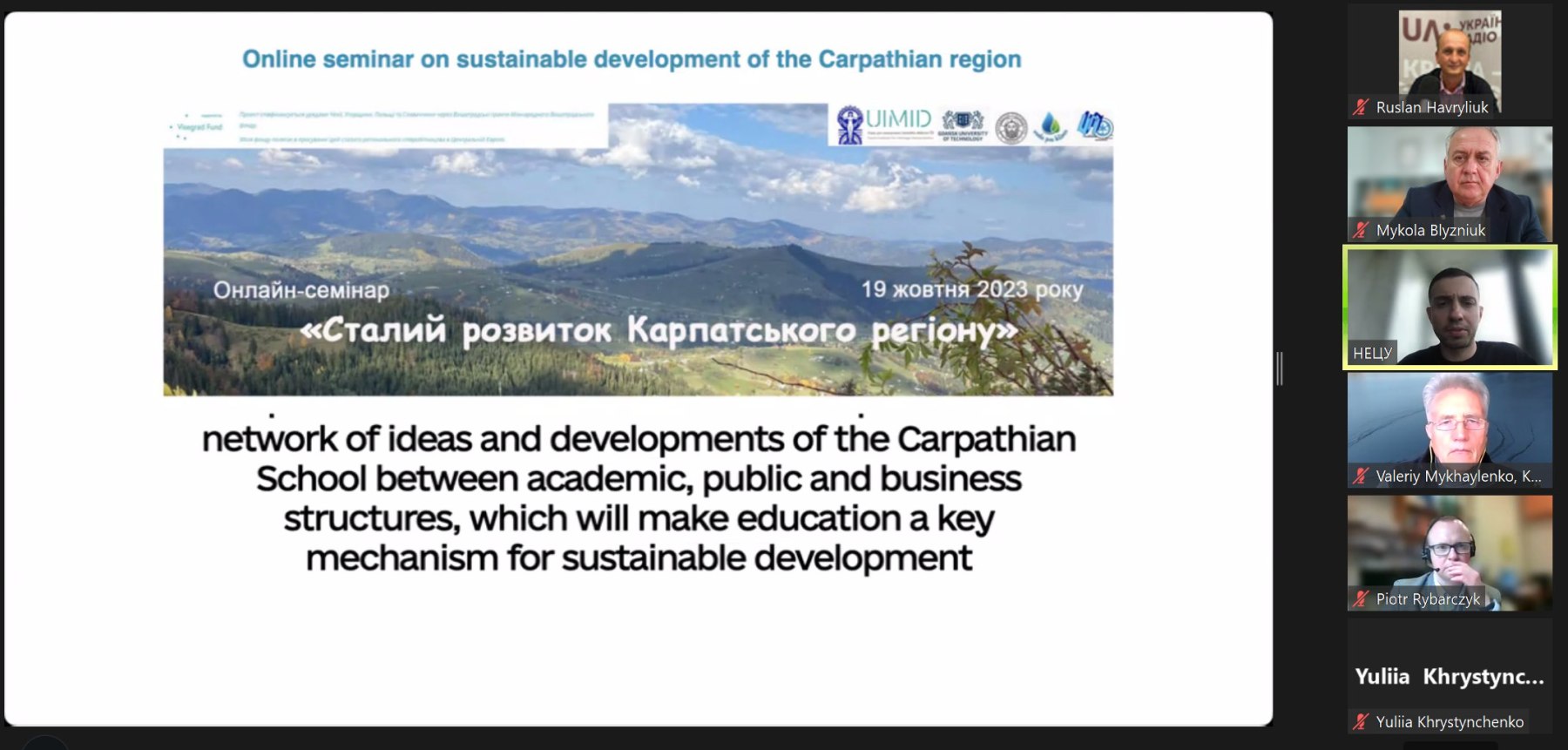 Під час презентаційної частини семінару Руслан Гаврилюк розповів про його цілі, залучених партнерів та проведені активності. Менеджер проєкту Тарас Ковальчук представив результати, зокрема створену освітню онлайн-платформу, проведені навчальні семінари та зимову сесії Міжнародної Карпатської школи, збірку наукових праць та навчальну програму за тематикою проекту. Партнерам було запропоновано долучитися до наповнення онлайн-платформи.