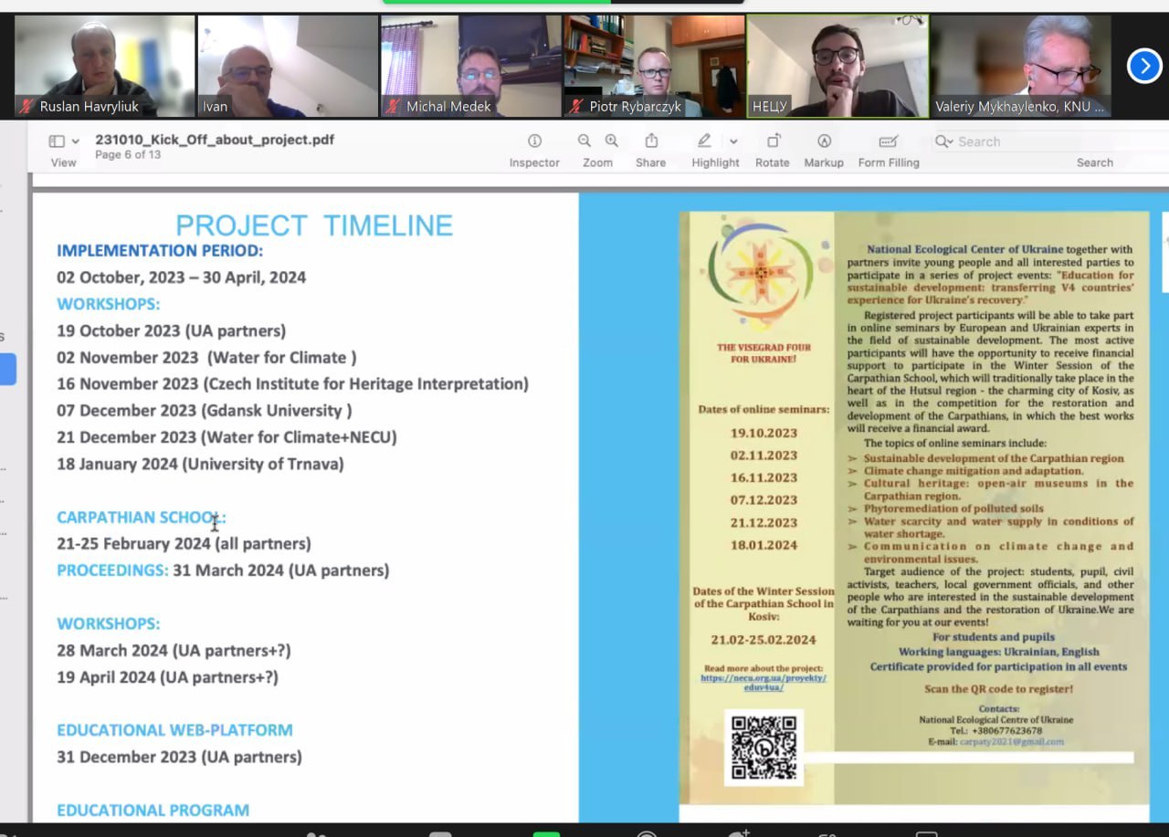 10 жовтня 2023 року відбувся організаційний семінар партнерів проекту “Освіта для сталого розвитку: поширення досвіду країн V4 для відновлення України”.