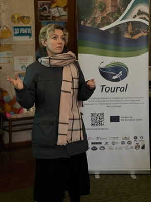 Під час зустрічі Діана Крисінська презентувала проєкт TOURAL та його проміжні результати. У своїй доповіді вона зазначила про виклики, які стоять перед відбудовою туристичної галузі на території Куцурубської громади, а саме: серйозні збитки інфраструктурі та навколишньому середовищу через російське військове вторгнення; бідність сільського населення; відсутність у знань і досвіду підприємницької діяльності; відсутність системного підходу до розвитку туризму (національний-регіональний-місцевий рівень); не розвинена туристична інфраструктура; обмежені туристичні послуги та доступ до них; віддалене розташування, жахливий стан доріг тощо.