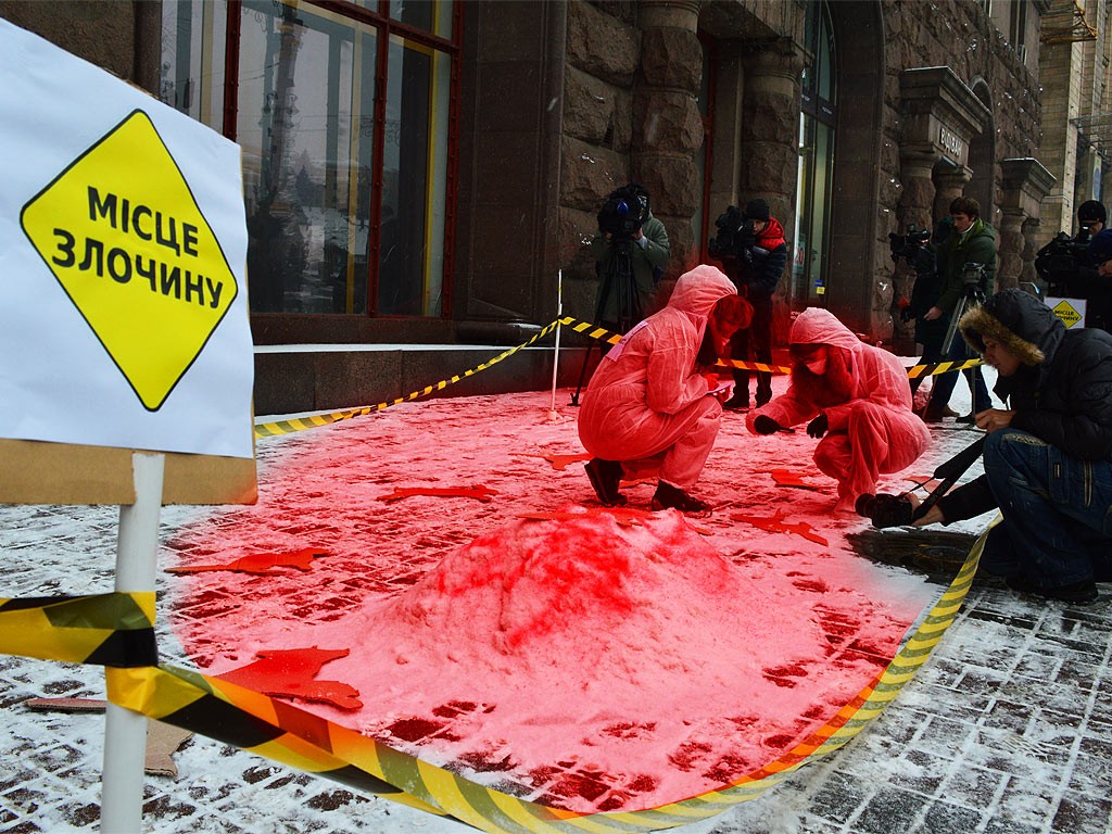 Театралізованою акцією-перфоменсом зустріли чиновників із Міністерства аграрної політики та продовольства України представники громадських організацій, нагадавши високопосадовцям про те, що промислове тваринництво пов’язано із погіршенням екологічної ситуації, соціальними та етичними проблемами. Представники різних організацій, а також просто активні люди, яким небайдуже гуманне ставлення до тварин та екологічна ситуація в Україні взяли участь у виставі – розслідуванні жорстокої кримінальної справи, в якій жертвами хутряної індустрії є десятки тварин.