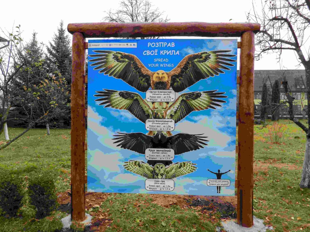 Стенд, що дозволяє порівняти розмах крил людини та птахів, поширених у Карпатах. Відвідувачі можуть буквально «приміряти» себе до орла, змієїда чи сови — і відчути силу пташиного польоту.