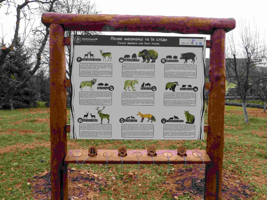 - Встановлені 2 інтерактивних стенди з елементами інклюзивності, як частини інклюзивної стежки на при офісній території національного природного парку «Вижницький».